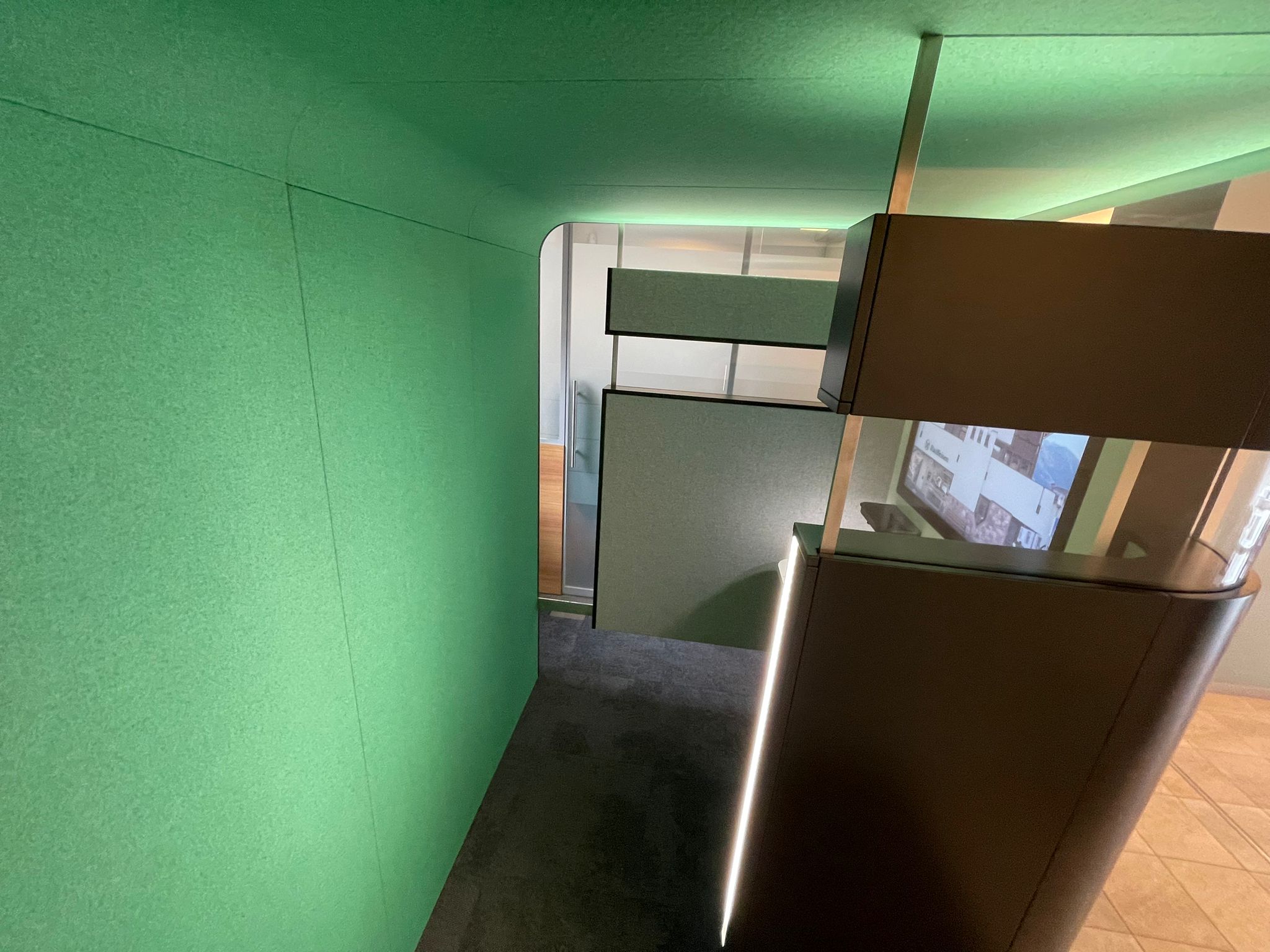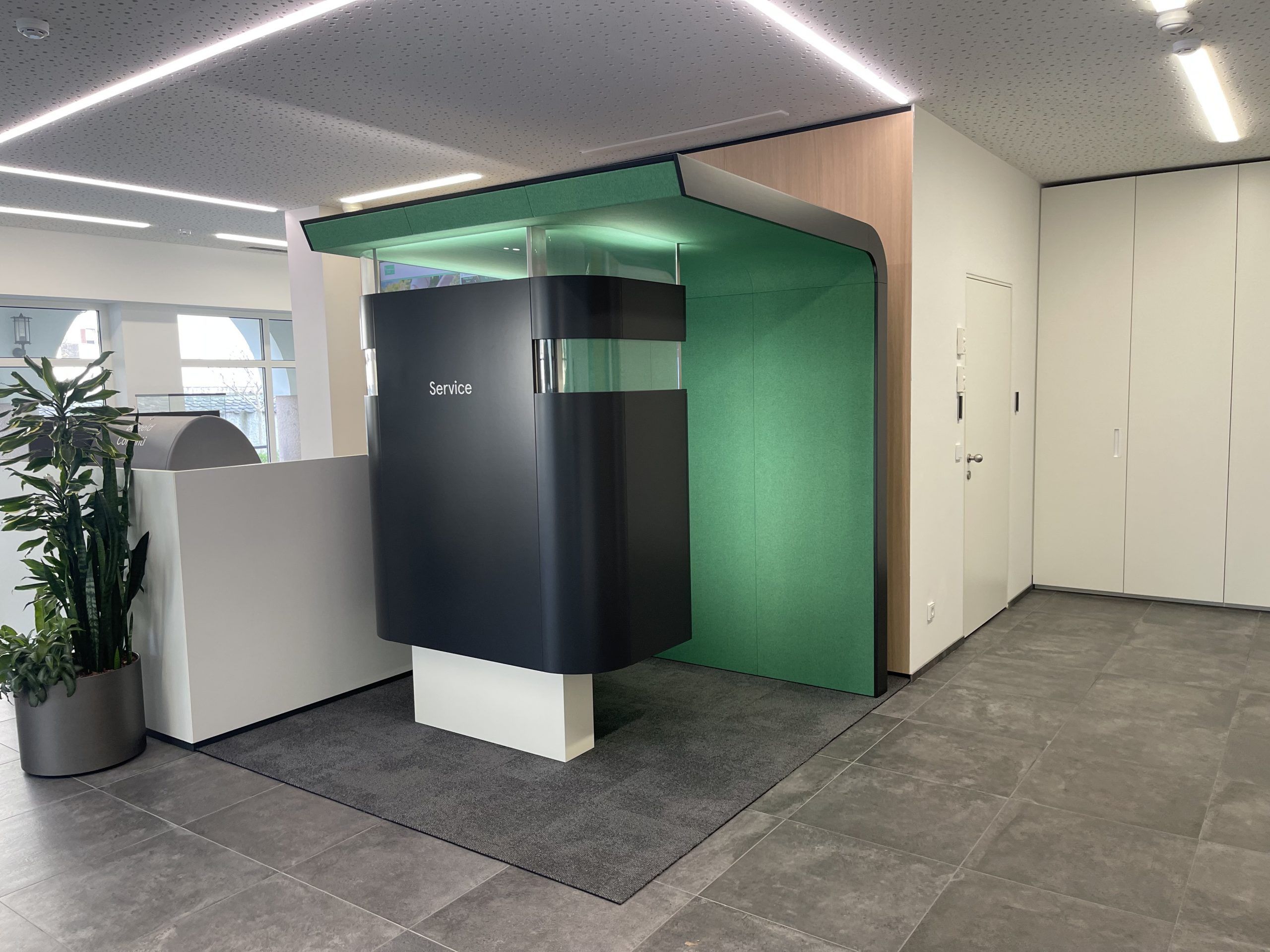 Die ideale Lösung für kompakte Filialflächen, Beratungsstände und kommunale Touchpoints – offen, akustisch optimiert und zukunftssicher.